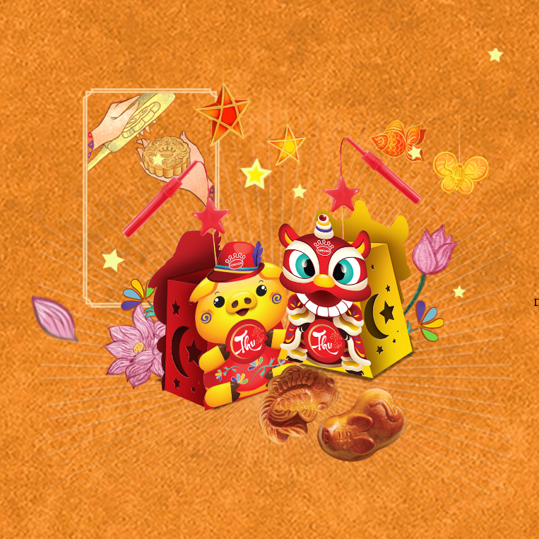 Dòng bánh Trung Thu Kinh Đô dành cho thiếu nhi được tặng kèm cần lồng đèn có nhạc khi mua 2 bánh cá vàng, heo vàng. Khi kết hợp với hình chú lân và chú heo dễ thương, hộp bánh sẽ trở thành chiếc lồng đèn Trung Thu hoàn chỉnh cho các bé phá cỗ đêm Rằm.